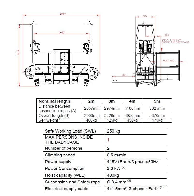 کلایمر baby cage نسبت به پلن ساختمان و میزان تو رفتگی آن طراحی و ساخت می گردد و ظرفیت و ساختار آنها نیز متفاوت می باشد.
